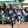 Es dauerte nur wenige Momente im ersten Viertel, da sorgte Headcoach Phil Gamble schon für Jubel auf den Rängen. Sein Touchdown bedeutete die 6:0-Führung, die Joel Bernhardt mit einem erfolgreichen Extrapunkt-Versuch auf 7:0 aufstockte. Es schien, als hätte das Team aus dem Mühlenkreis die Gäste um Coach Brown sicher im Griff. Die Defense agierte wie gewohnt sicher. So waren es zwei individuelle Fehler, die Iserlohn wieder auf den Plan riefen. Erst verunglückte ein Punt, in der Folge verlor man in der eigenen Endzone den Ballt, so dass die Titans wenige Meter vor der Goal-Line wieder in Ballbesitz kamen. Dieses Geschenk ließen sie sich nicht nehmen und verkürzten per Touchdown auf 6:7. Der Extrapunkt-Versuch wurde seitens der Wolves allerdings geblockt.
