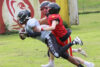 Münster schaffte es mit seinem Laufspiel in der Folge sehr viel Zeit von der Uhr zu nehmen. Und so ging es mit der knappen Mindener Führung ins zweite Viertel. Dort misslang ein Punt der Wolves, so dass Münster fünf Yard vor der Endzone in Ballbesitz kam. Die Wolves-Defense stemmte sich mit Urgewalt gegen die drohenden Punkte und lieferte dabei eine überragende Performance ab. Aber immer wieder hatte die Unparteiischen etwas an ihrer „Arbeit“ auszusetzen, so dass die Mammuts letztlich im siebten Versuch, seitdem sie an der 5 Yard-Position gestartet waren, ihr Ziel erreichten. Ein klarer „Fallstart“ der Hausherren wurde nicht geahndet, stattdessen gab es wieder eine Strafe gegen Minden. Und irgendwann kommt halt mal ein Gegner durch. Stand 7:7. Es war die siebte oder achte Flagge gegen die Wolves – die Mammuts hatten noch nicht eine gesehen.