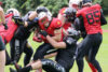 Daneben ist es einmal mehr die komplette Defense mit D-Liner Kai Schröter, an dem kaum ein Vorbeikommen war, die zumindest bis in die letzten Züge des Spiels einmal mehr eine Bank ist. Die wacker kämpfenden und nie aufsteckenden Mammuts werden in der letzten Spielminute noch mit einem Touchdown und Extrapunkt belohnt, der in ihren Reihen großen Jubel auslöst. Der guten Stimmung beim weiter ungeschlagenen Tabellenführer und seinen Fans tut das keinen Abbruch.