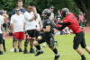 Anschließend sind die Wölfe weiter am Drücker, doch ein erfolgreicher Puntreturn in die Endzone von Fedd wird aufgrund eines illegalen Blocks weitab vom Geschehen zurecht nicht anerkannt. Ebenso der Catch von Tobias Pauls im gelobten Land, dessen Touchdown eine gelbe Flagge vorausgeht. Nur logisch, dass das Headcoach Phil Gamble nicht gefällt. Allerdings schlagen dabei zwei Herzen in seiner Brust. „Einerseits ist es toll zu sehen, wie wir Münsters Defense in beiden Drives auseinandergenommen haben, aber es ärgert mich noch mehr, dass wir uns dabei durch dumme Fehler um den Lohn bringen. Und das gerade durch erfahrene Spieler.“