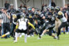 Und genau so, wie das zweite Viertel aufgehört hatte, ging das dritte weiter. Frederic Hempelmann gelang eine weitere Interception, so dass seine Offensive acht Yard vor der Goalline wieder aufs Feld zurückkehren konnte. Ein Pass von Fabrice Steinbach durch die Mitte bedeutete den zweiten Touchdown für Aymen Tlili, dem wenig später gar sein dritter Besuch im gelobten Land gelang. Der Hunger der Wölfe war aber noch nicht gestillt. Und erneut war es die Defense, die ihre starke Leistung belohnte. Kenneth Patten blockte einen Düsseldorfer Punt und trug das „Ei“ zum siebten Mindener Touchdown in die Endzone. 49:0 für die Ostwestfalen. Eine weitere Interception durch Willie Fedd jr. blieb anschließend ohne Folgen für die Gäste vom Rhein.