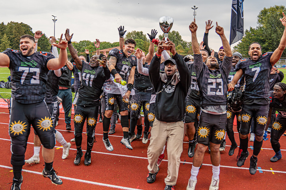 „Ich muss nach Spielende erst mal richtig durchatmen. Auf so viel Spannung hätte ich gut und gerne verzichten können“, merkte man Sportdirektor Volker Krusche an, dass ihm ein Riesenbrocken vom Herzen gefallen war. „Aber am Ende fragt keiner mehr danach, wie wir aufgestiegen sind. Entscheidend ist, dass wir jetzt in der GFL2 sind!“