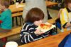 Nach zwei Stunden hieß es abbauen. Alle fassten mit an und in Windeseile waren alle Geräte wieder in den Geräteräumen verstaut. Schnell wurde sich umgezogen, denn der Magen knurrte nach dem vielen Toben. Im Eingangsbereich waren schon die Tische aufgestellt und die Pizza geliefert. Jeder konnte so viel Pizza essen, wie er konnte. Dazu gab es Apfelschorle. Müde, satt und zufrieden traten alle den Heimweg an. Der Vorsitzende der DJK, Stephan Kurze, dankte Frau Sanftenberg für ihre Arbeit und überreichte ihr einen Blumenstrauß zum Dank.