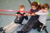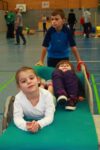 Die Kinder wurden nicht enttäuscht. Birgit Sanftenberg, die für die Ausrichtung der Aktion zuständig war, hatte aus der Sporthalle eine riesige Manege gezaubert. So konnten die Kinder als Trapezkünstler oder Kletterartisten ihre Geschicklichkeit beweisen. Nach einem Koordinations- und Geschicklichkeitstest lag es an den Artisten über das Seil oder auch über eine gefährliche Schlangengrube zu gelangen. Sehr aufregend waren auch die Löwendompteure, welche mit ihren Löwen den berühmten Reifen-Trick vorführten. Auch Zauberer konnten sich in der Zauberhöhle und dem Verschwinde Kabinett voll austoben. Jede Menge Spaß und viel zu entdecken gab es für die Kinder. Auch den Eltern war es nicht langweilig. Manche tobten mit ihren Kindern über die aufgebauten Geräte, manche unterhielten sich mit anderen Eltern.