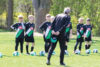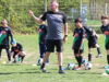 Der Ablauf der Tage in Minden ist schnell erklärt. Morgens stehen zunächst für zwei Stunden professionelle Trainingseinheiten auf dem Programm. Dabei arbeiten die Kinder in vier Gruppen vier Stationen ab: zwei Spielstationen und zwei Übungsstationen. „Dadurch bleiben die Kinder konzentrierter, als wenn sie nur üben müssten.“ Bei den Übungen geht es um Passspiel, den Einsatz des linken und rechten Fußes, ums Dribbling, um die Spielgenauigkeit. Es wird später aber auch mit Hütchen gearbeitet, bei denen die Jungs und Mädchen selbst entscheiden müssen, wie sie am besten ans Ziel und zum erfolgreichen Torschuss kommen. „Insgesamt machen wir sehr viele Übungen mit den Kids in dieser einen Woche. Daraus nehmen sie natürlich auch viel mit in ihre Spiele.“