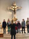 Gleich nach der Ankunft wurde erst einmal der 11. Geburtstag von Sophie gefeiert und  kleine Geschenk wurden übergeben. Anschließend wurde gleich ein bisschen geprobt und es ging gemeinsam mit der Chorleiterin Christine Wagner rüber in die Kirche. Dort sang der Chor bei der dort stattfindenden Andacht ein Lied. Pastor Thomas und die Gemeinde haben sich sehr darüber gefreut! Danach wurde gleich weiter geprobt.